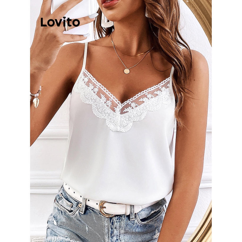 Lovito Regata Casual De Renda Lisa Para Mulheres LBE04013 (Branco)