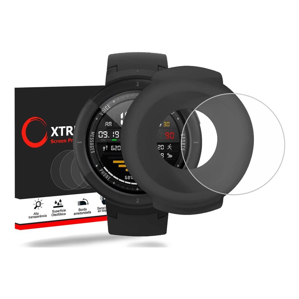Kit Capa Case Silicone Amazfit Verge + Pelicula Vidro Temper Xtreme Glass -Kit de Proteção completa para Xiaomi Amazfit Verge Capinha e Película