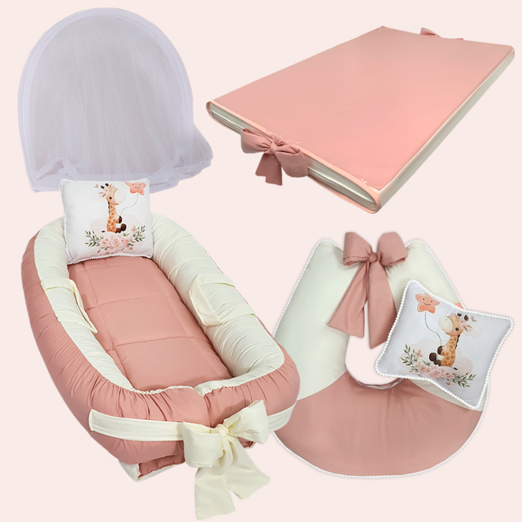 Ninho Redutor de Berço, Almofada de Amamentação, Capa de Bebê Conforto, Capota Solar, Protetores de Cinto, Capa de Carrinho, Apoio Redutor + Almofadinhas