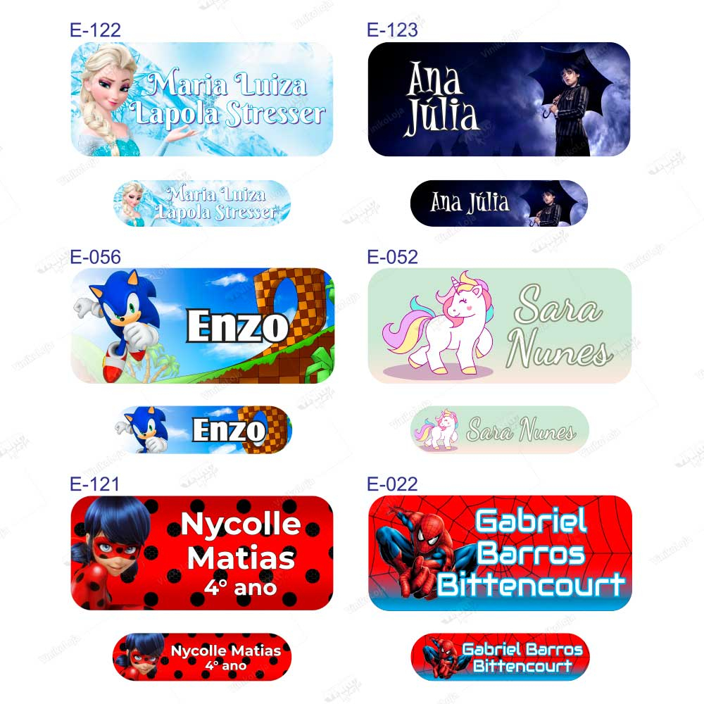 KIT 520un Etiqueta Adesivo Vinil Escolar Personalizado NOME e TEMA com 3 MEDIDAS à prova d'água