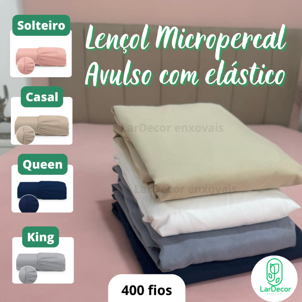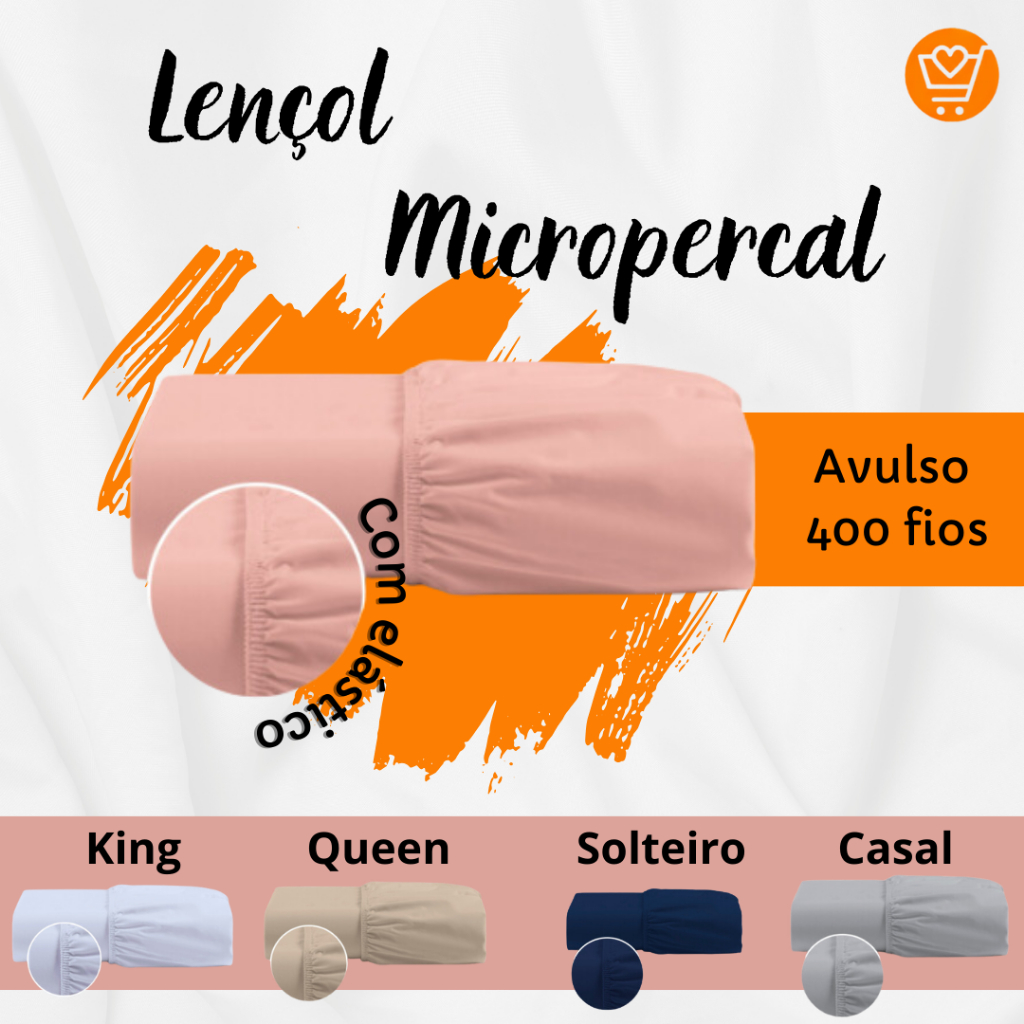 Lençol Com Elastico Avulso 400 Fios Micropercal Poliéster Liso Toque Macio com Elástico Diversos Tamanho Solteiro Casal Queen King Size