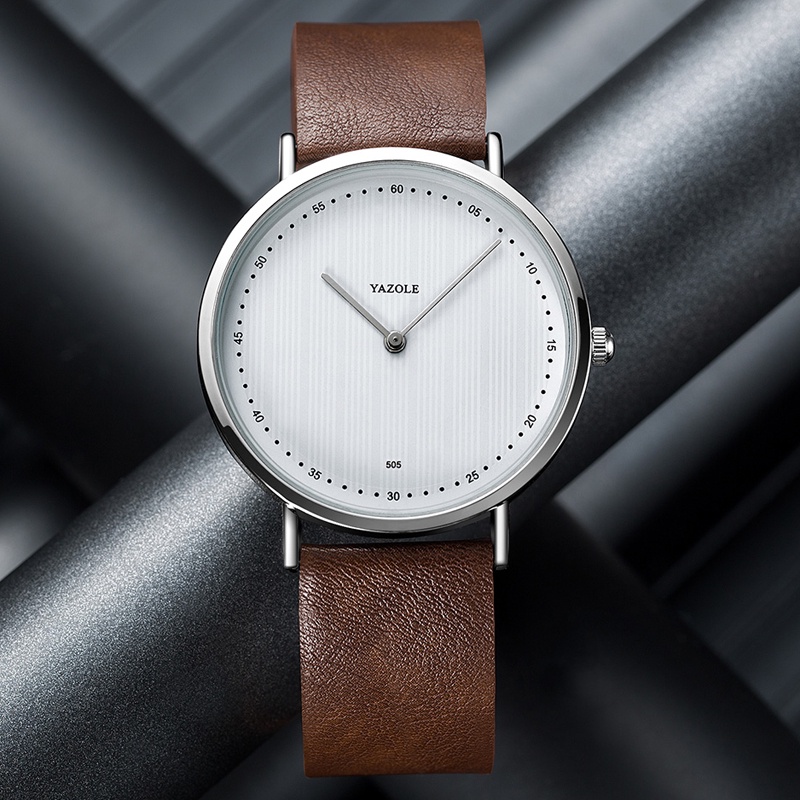 YAZOLE Relógio De Pulso Masculino Minimalista Ultra Fino Simples À Prova D'água De Couro