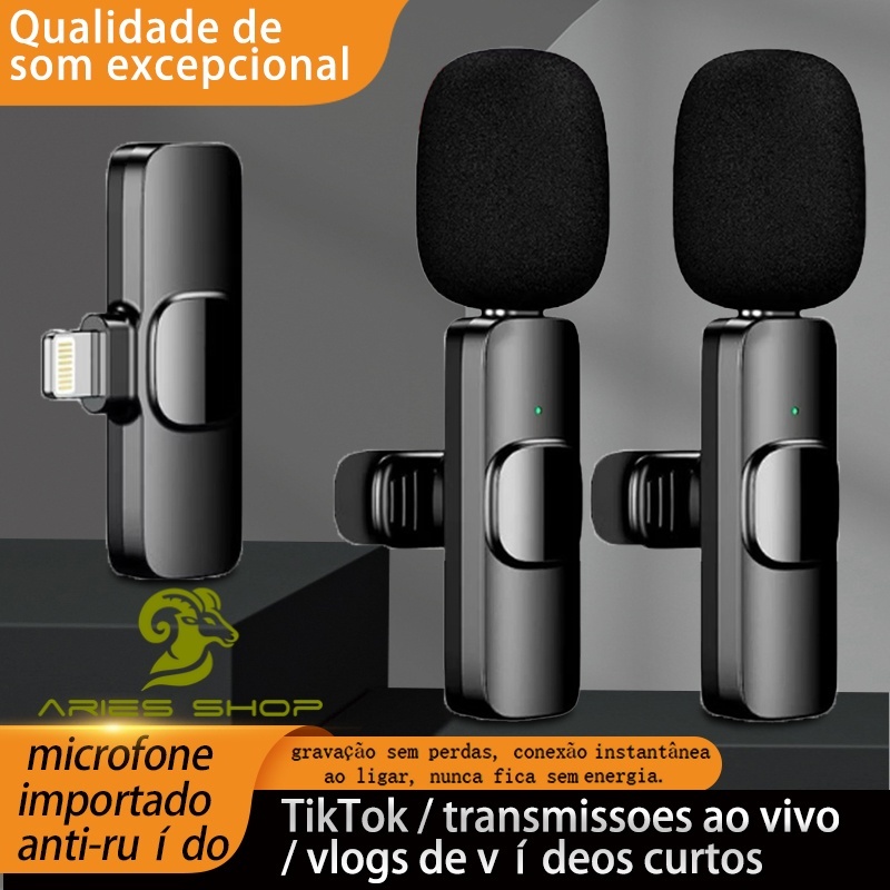 KIT 1/2 Microfone de Lapela Sem Fio K9 Vlog Compatível iPhone e Android Direct Selling