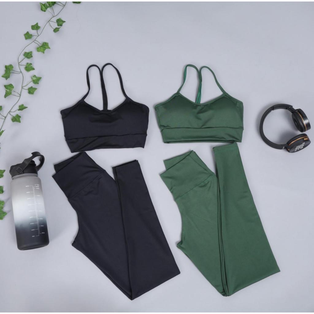 Kit 2 Conjuntos Top e Calça Legging Alcinha Costas Nadadora Fitness Treino Academia