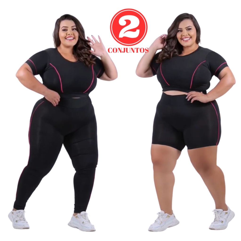 Kit 2 Conjuntos fitness Plus Size Top + Short e Top + Legging academia treino caminhada