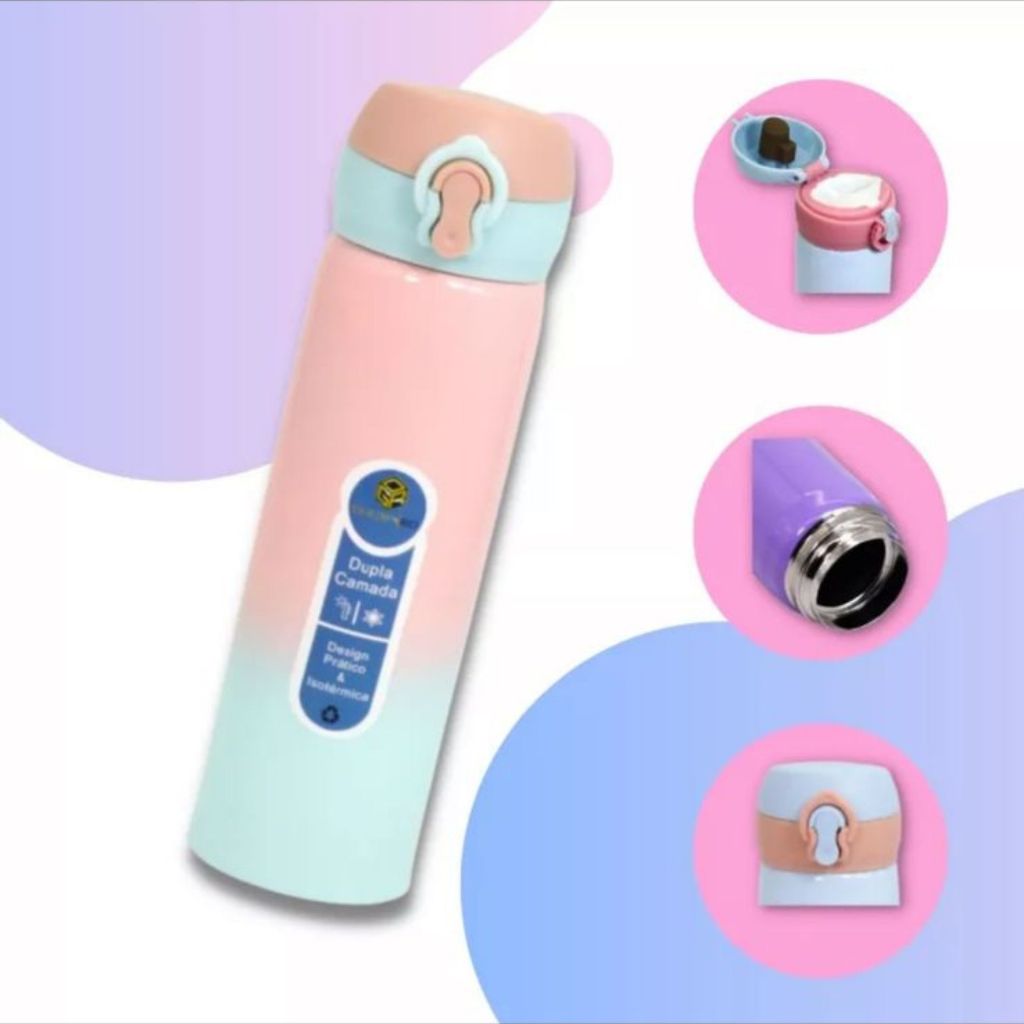 Garrafa Squeeze Térmica Aço Inox 450 ml Portátil Com Tampa E Sistema de Trava