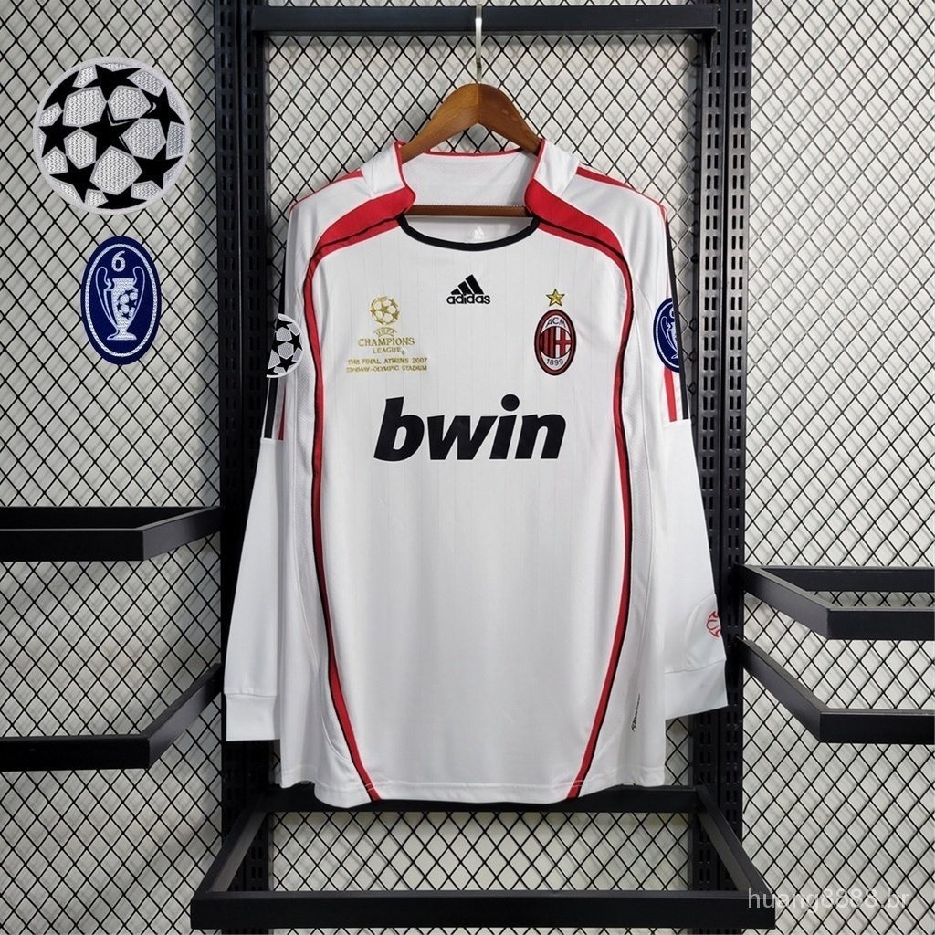 2006 AC Milan Camisa Retro 06/07 Homens Manga Curta Futebol Alta Qualidade Branco BLSF LYSB