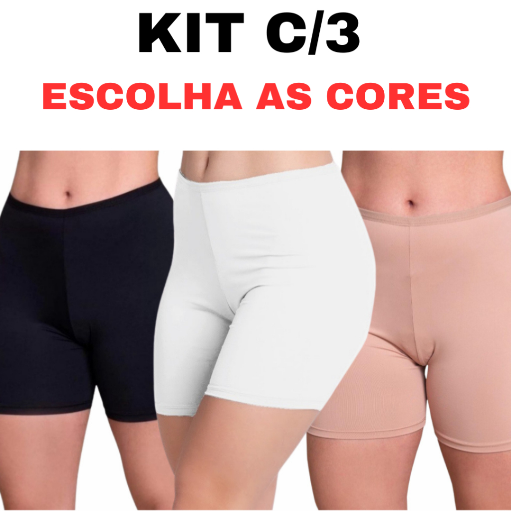 Kit 3 Short Segunda Pele Bermuda Anágua Usar Vestido Saia