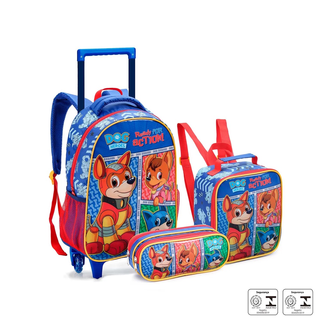 KIT MOCHILA PATRULHA CANINA DOG HEROES C/ RODINHA 3 PEÇAS SEANITE MR40495