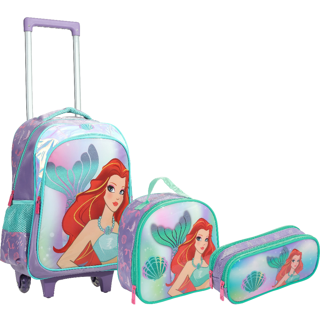 Kit Mochila Rodinha Infantil Lancheira Estojo Sereia MIF5342-C