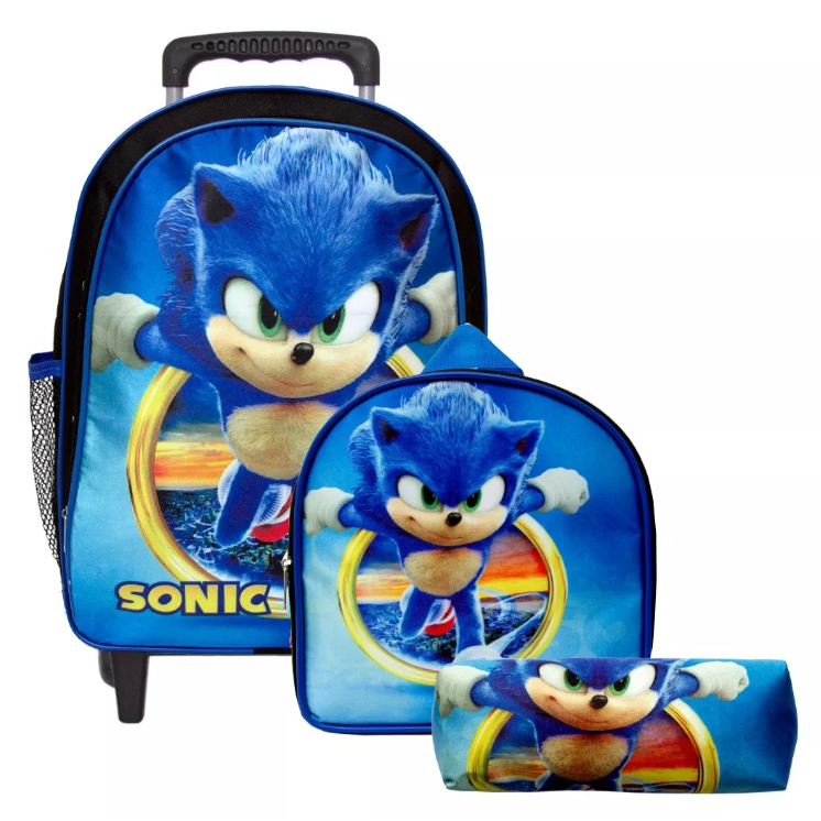 Kit Mochila Sonic Rodinha + Lancheira+ Estojo 3 peças