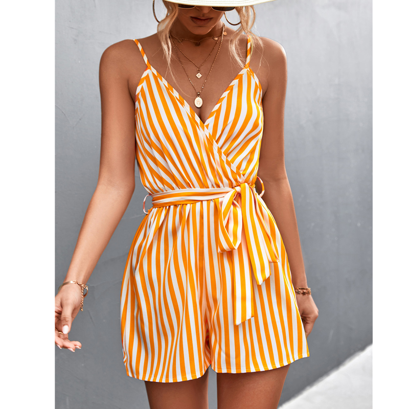 Vestido De Verão Sexy Em V Com Pescoço Moda Feminino Sem Costas Vestidos De Listras Amarelas Manga Cinto