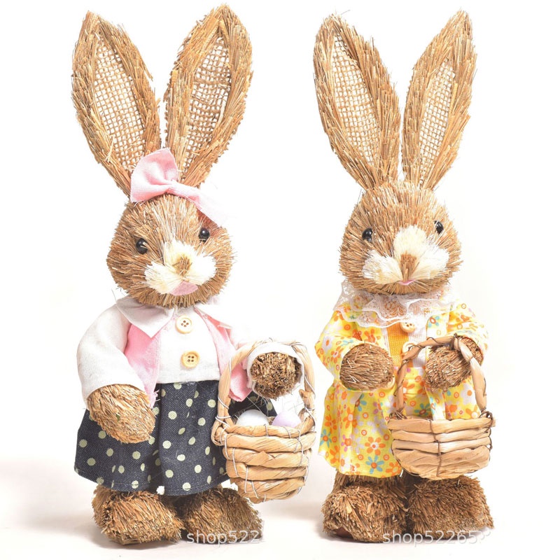 Decoração De Páscoa Coelho De Palha , Casal De Coelhinho , Ornamento Feito À Mão , Coelhos Bonitos Estátuas De Mesa Para Cozinha De Escritório Primavera 35cm