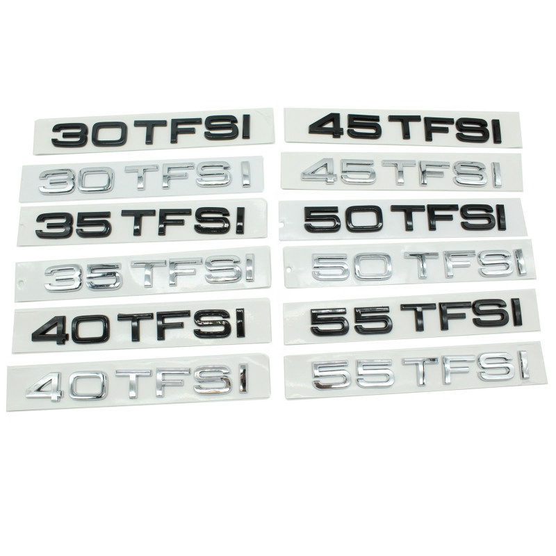 30TFSI Adesivo De Carta Para Audi A1 A3 A4 A5 A6 A7 A8 TT 60 35 40 45 50 55 TFSI Logotipo Traseiro Emblema De Deslocamento Do Tronco Preto Prata