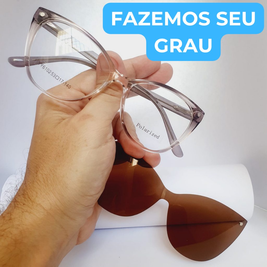 Armação de óculos para grau Clip On de clipon Redondo armacao oculos redonda Unissex Feminino Masculino Polarizado feminina Lente Polarizada masculina PROMOÇÃO