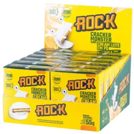 CRACKER MONSTER COM PASTA DE AMENDOIM DE CREME DE LEITE EM PÓ 55G CX C/ 12 UNID - ROCK PEANUT