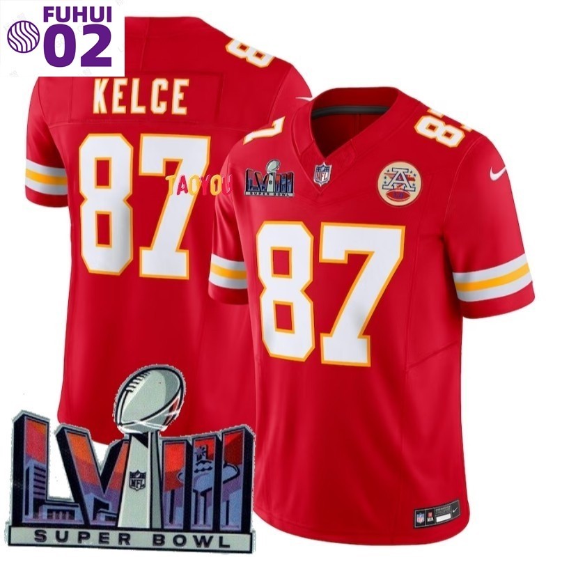 Masculino Camiseta 2023-2024 Super Bowl LVIII Camisa NFL Jersey Kansas City Chiefs 87 Travis Kelce White Limited Camisa De Futebol