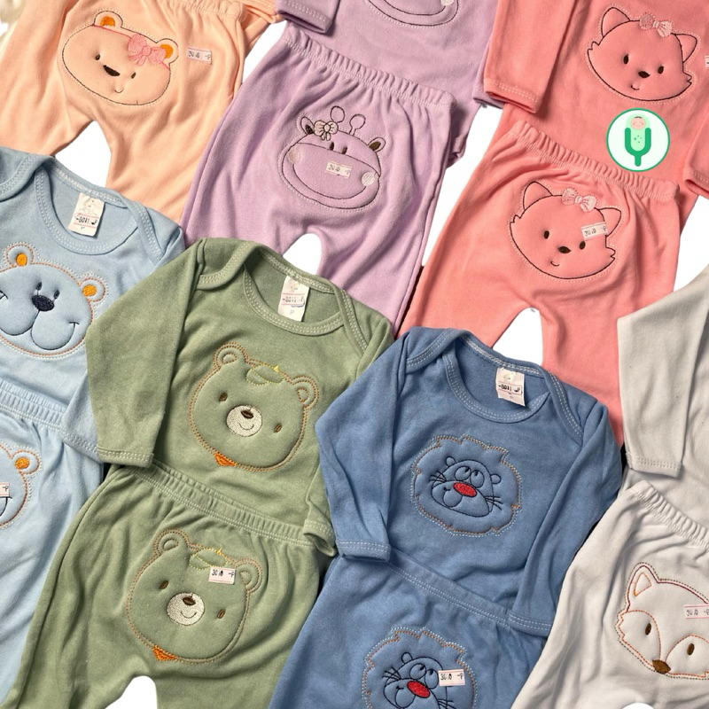 Kit Conjunto 2 peças para Bebê Nenê Menino e Menina - Temáticos, personagens e mêsversário - 100 % algodão Promoção