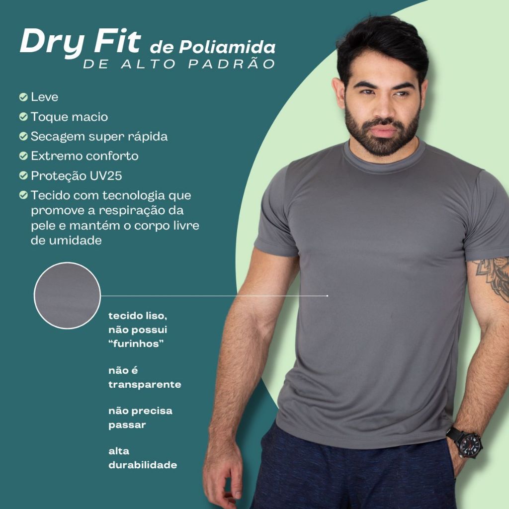 Camisa Dry Fit Masculina Poliamida Academia Proteção Solar UV 25 Tecido Gelado Manga Curta Pro Fitness Corrida Treino
