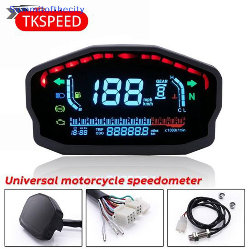 Summitofthecity Universal Motocicleta LCD Tacômetro Digital LED Velocímetro Odômetro Medidor De Velocidade BR