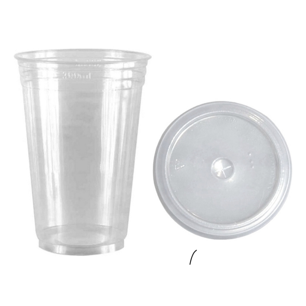 Copo Descartável Transparente 500ml Açaí Milk Shake Pp Liso C/Tampa 100un