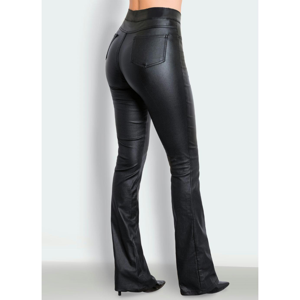 Calça Disco Hot Pants Flare Em Cirré Couro Com Bolsos Zíper E Botão Confortável WOLFOX