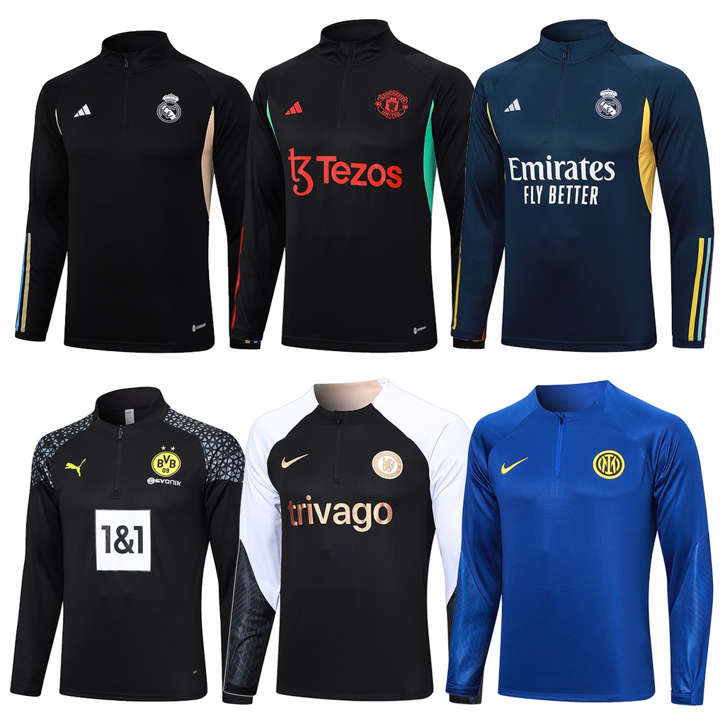 Novo 2023 2024 DT HM Fato De Treinamento De Futebol De Manga Comprida Com Meio Zíper