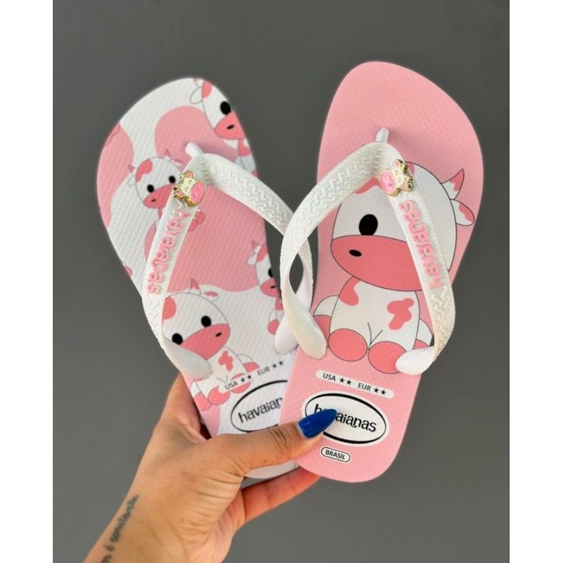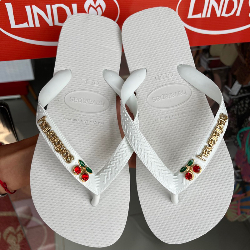 Chinelo Havaianas Branca Feminina Original Personalizada Com Pingentes De Logomarca e Cereja