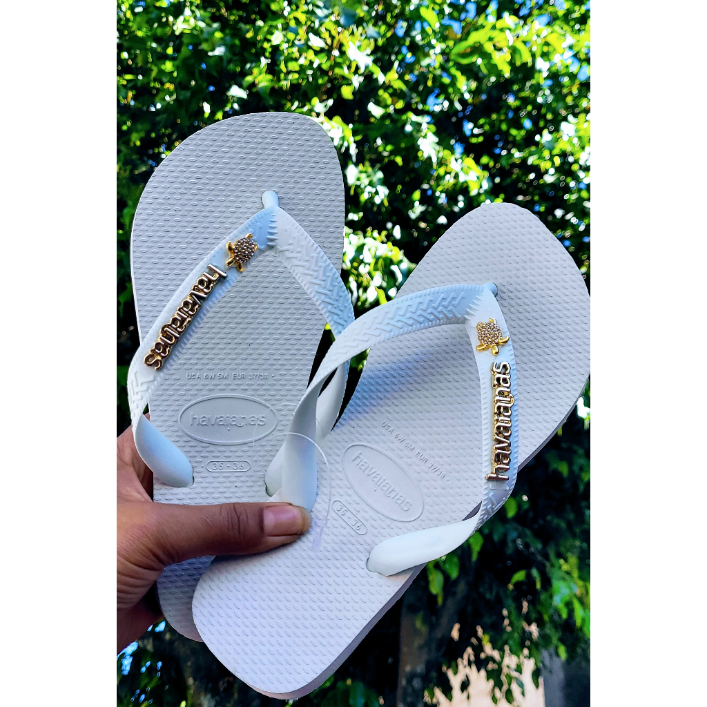 Havaianas Chinelo com pingente Tartaruga e Logo Dourado