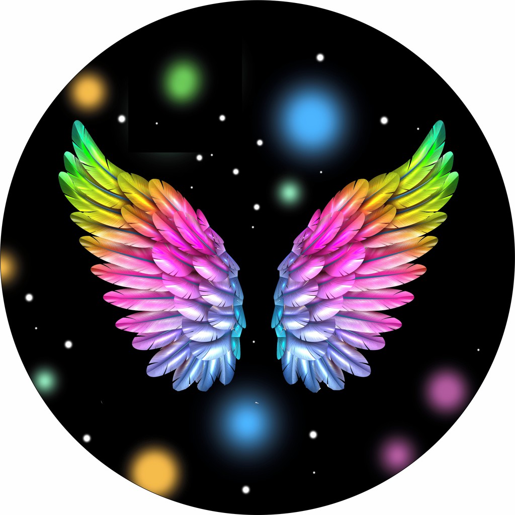 Painel redondo tecido sublimado Asas Neon 1,50m x 1,50m com elástico