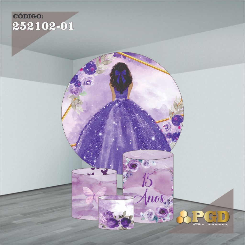 Painel Redondo em tecido sublimado 15 anos 1,50m x 1,50m com elástico