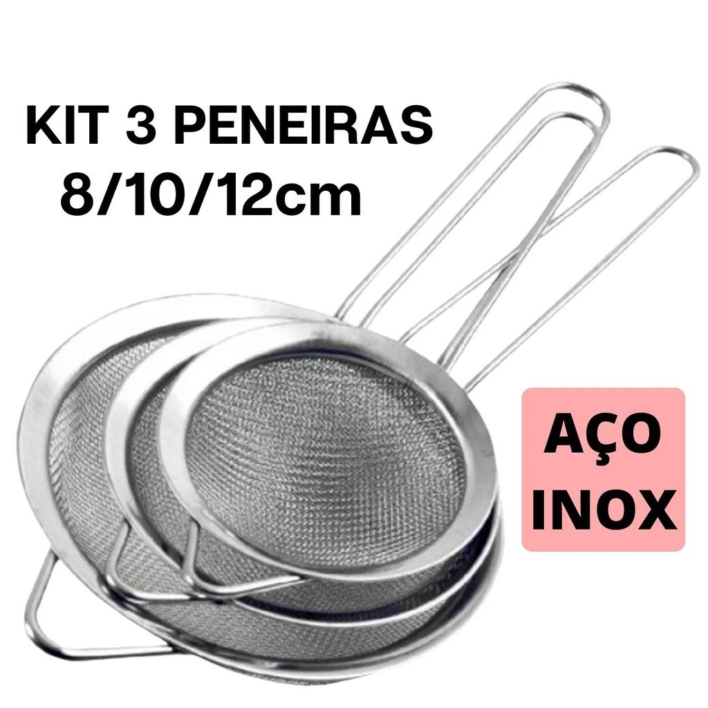 Kit 3 Peneira Coador Em Aço Inox Para Cozinha - 3 Tamanhos P M G 8/10/12 cm Promoção