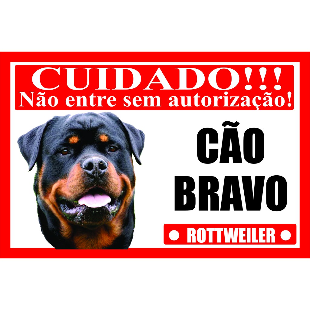 Placa Cuidado Cão Bravo Rottweiler Tamanho 20 x 30 cm modelo 006 - Fabricação Própria