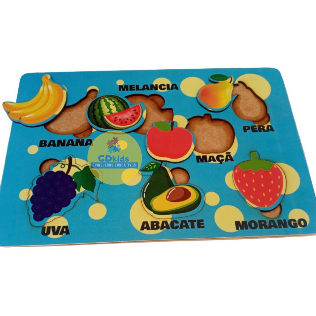 Brinquedo Encaixe Frutas Madeira Quebra Cabeça Frutinhas Brinquedo Educativo Pedagógico