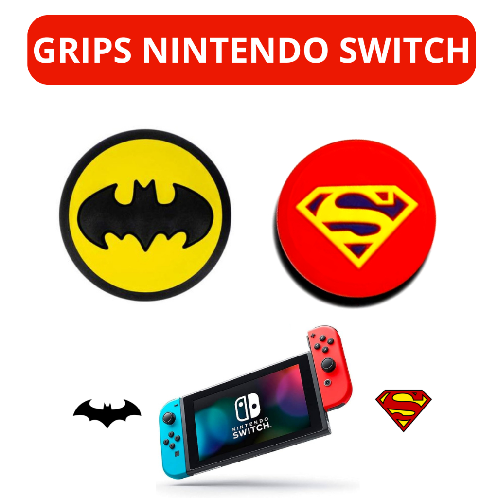 Kit Grips Analógico Borrachinha Superman Batman Homem Aranha Nintendo Switch Oled V2 V1 Lite Joy Con Heróis Marvel Grips