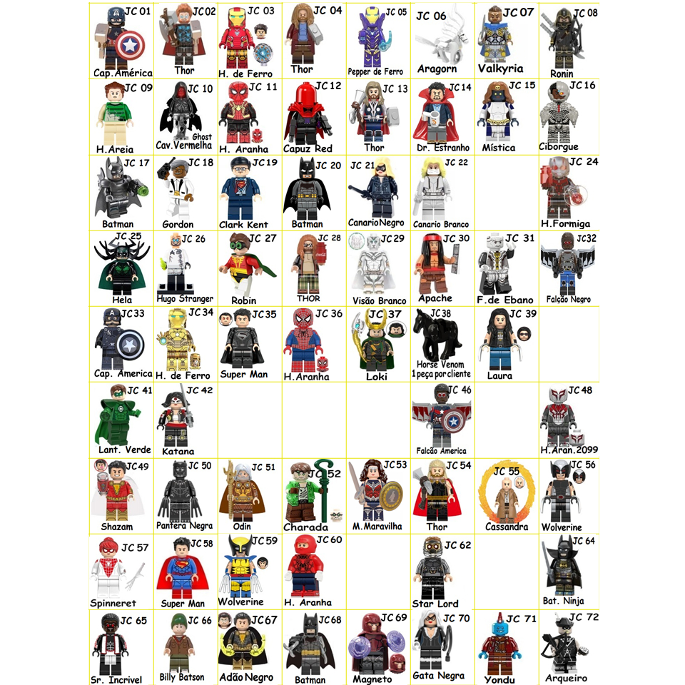 KIT 10 BONECOS COMPATIVEL SIMILAR LEGO SUPER HEROES, MARVEL, STAR WARS ,ANIME, JOGADOR DE FUTEBOL, HOMEM ARANHA,BATMAN