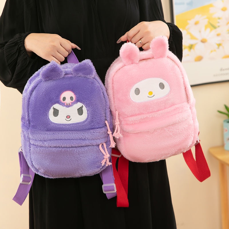 ⚡⚡⚡ Bolsa Sanrio de pelúcia Kawaii Kuromi Mochila Anime Melody Cinnamoroll Bolsas de pelúcia Pochacco Cartoon Bolsa de pelúcia para presentes de meninas 【ensolarado】