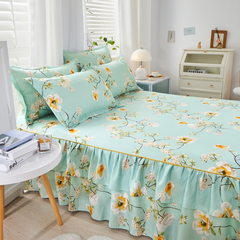 DANSUNREVE Conjunto De Lençóis De 3 Em 1 Cama Com Flor De Dupla Camada Cobertura De Saia De + Capa De Travesseiro De Algodão Penteado De 2 Peças 18x28 Desenhos Quentes (Single/Double/Queen/King)