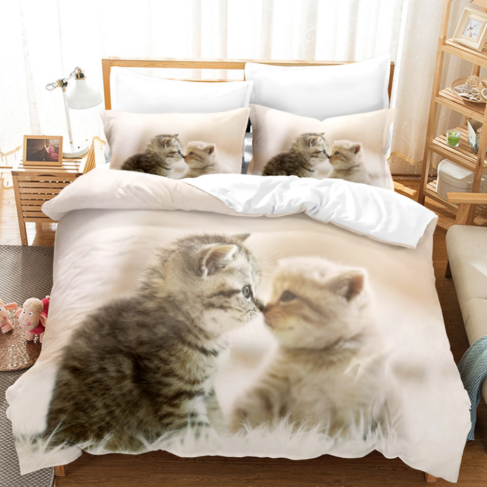 Conjunto De Capa De Cama 3 Peças Gatos Conforto Queen Size for Women Impressão 3D Animals Pattern Duvet Cover Set Com 2 Fronhas Microfibra Para Crianças Animais De Estimação Zipper