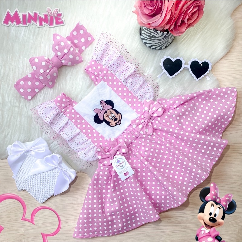Romper Minnie Minie Rosa baby Salopete Fantasia Vestido Infantil Bebê Disney Vermelha