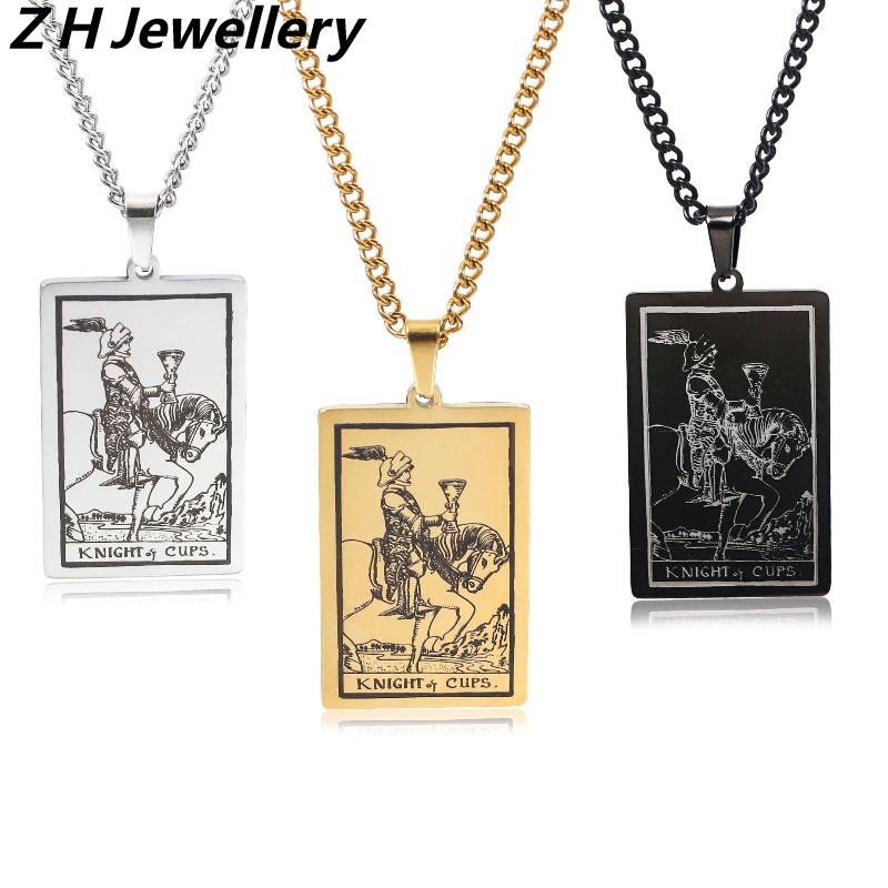 Z H Jóias Vintage Waite Tarô Santo Grail Knight Pendant Moda Masculina Colar De Aço Inoxidável Hip Hop Titanium Steel Party Acessórios