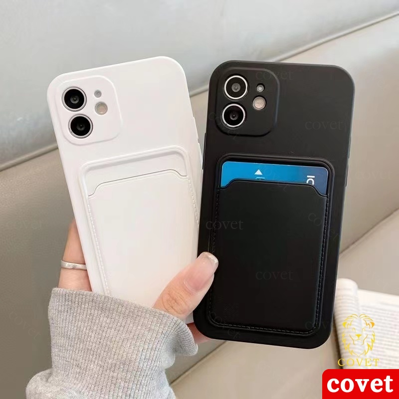 COVET Silicone phone case with card holder Case Capa Capinha De Celular Para iPhone 11 12 13 Pro Max X Xs Xr XS MAX 7 8 Plus SE 2020