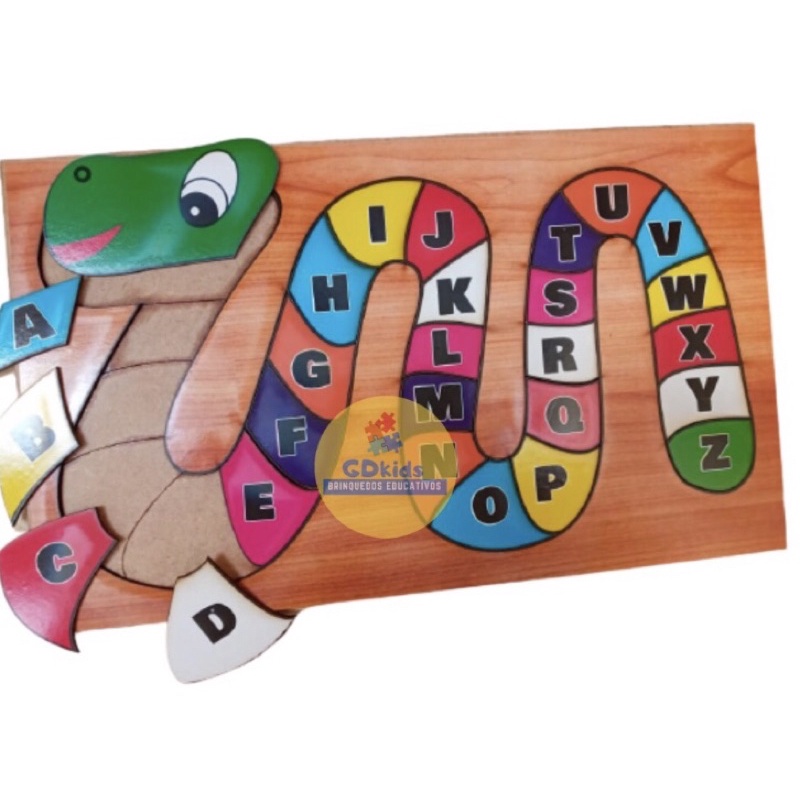 Quebra Cabeça Alfabeto Brinquedo Cobrinha Educativo em Madeira Alfabetização Letras Brinquedo Pedagógico