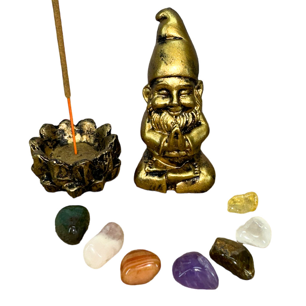 Estatueta Duende da Sorte + Castiçal + 7 Pedras da Sorte