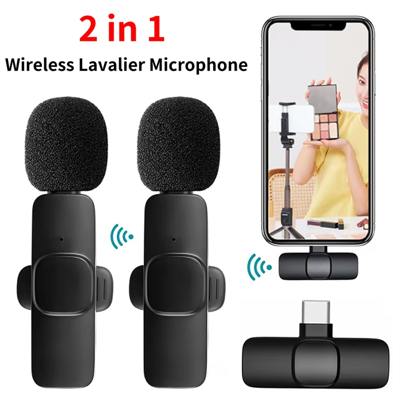 Microfone Lapela Para Celular Kit 2 Em 1 Wireless Sem Fio Compatível Android Ios Iphone
