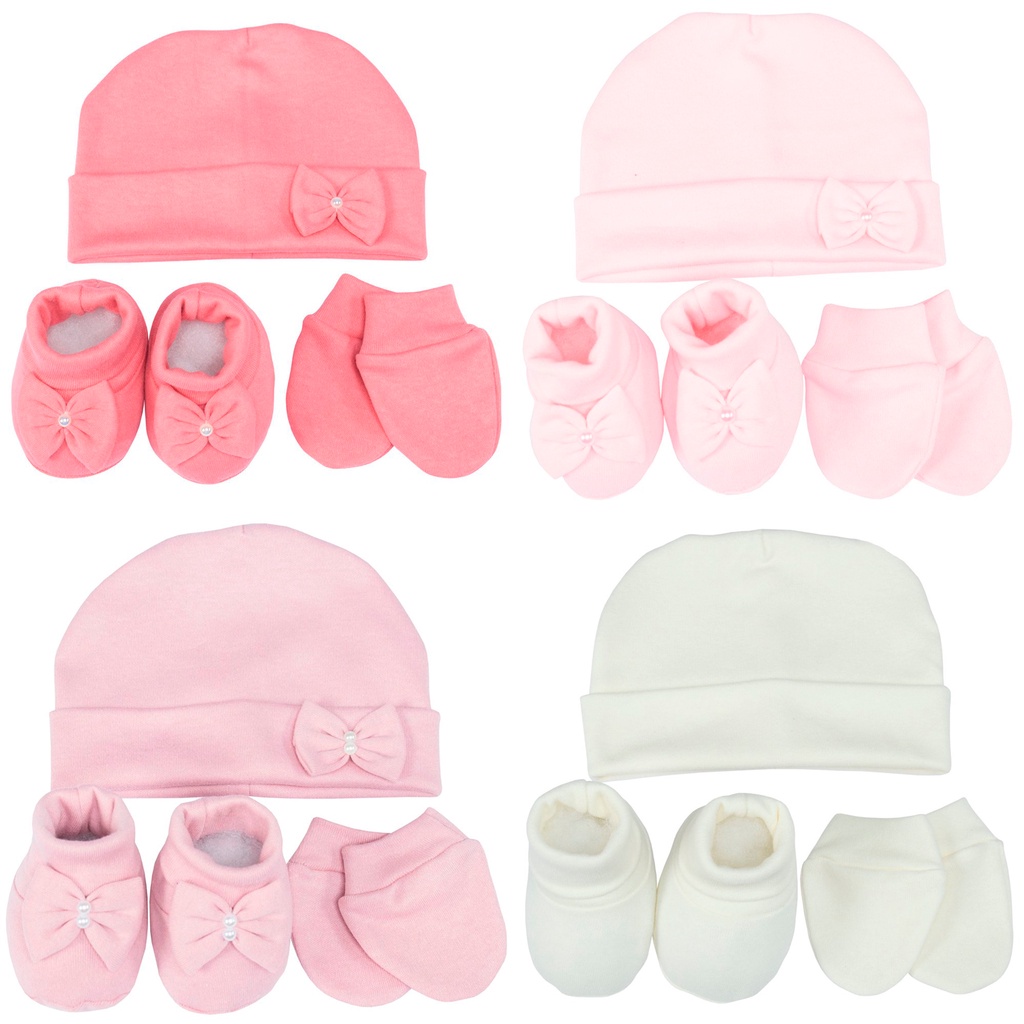 Kit Touca, Luva e Sapatinho para Bebê - 100% Algodão
