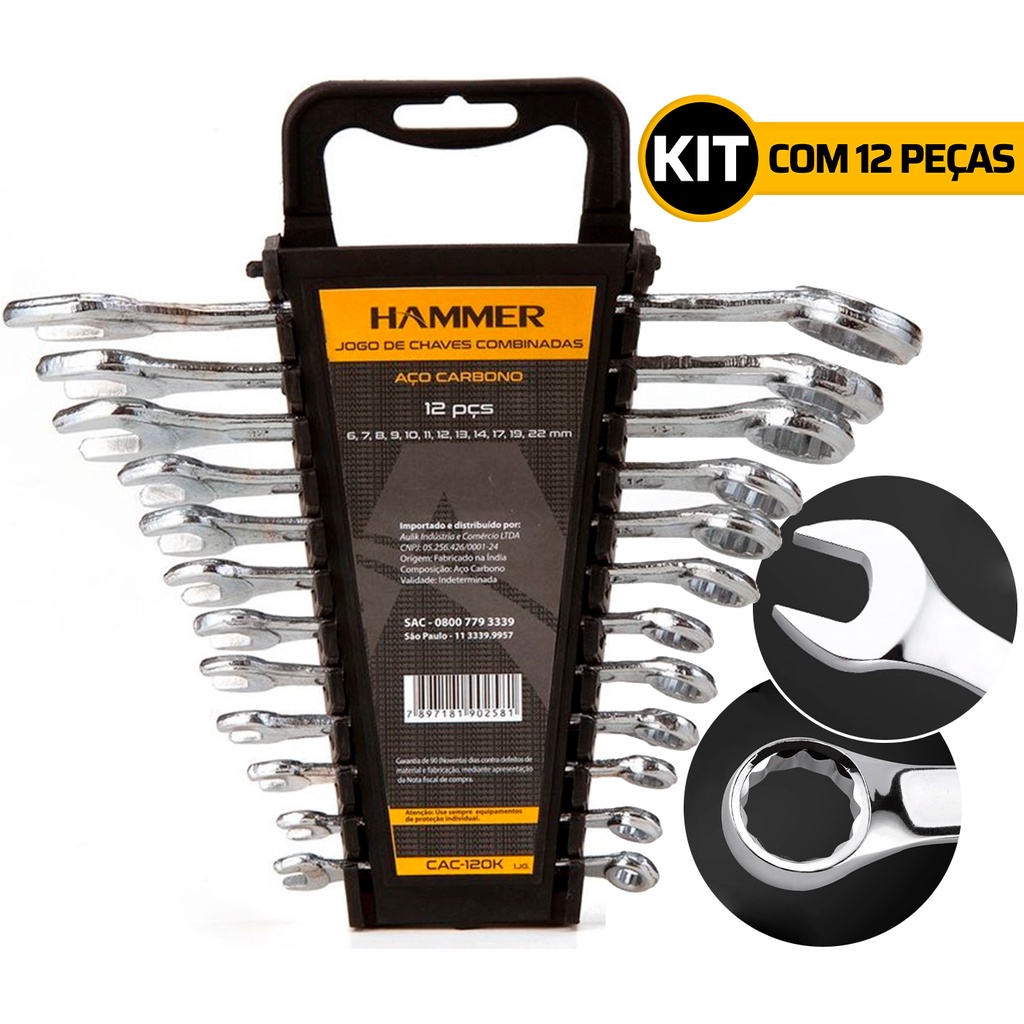 Jogo De Chave Combinada Hammer 6 A 22mm 12 Peças