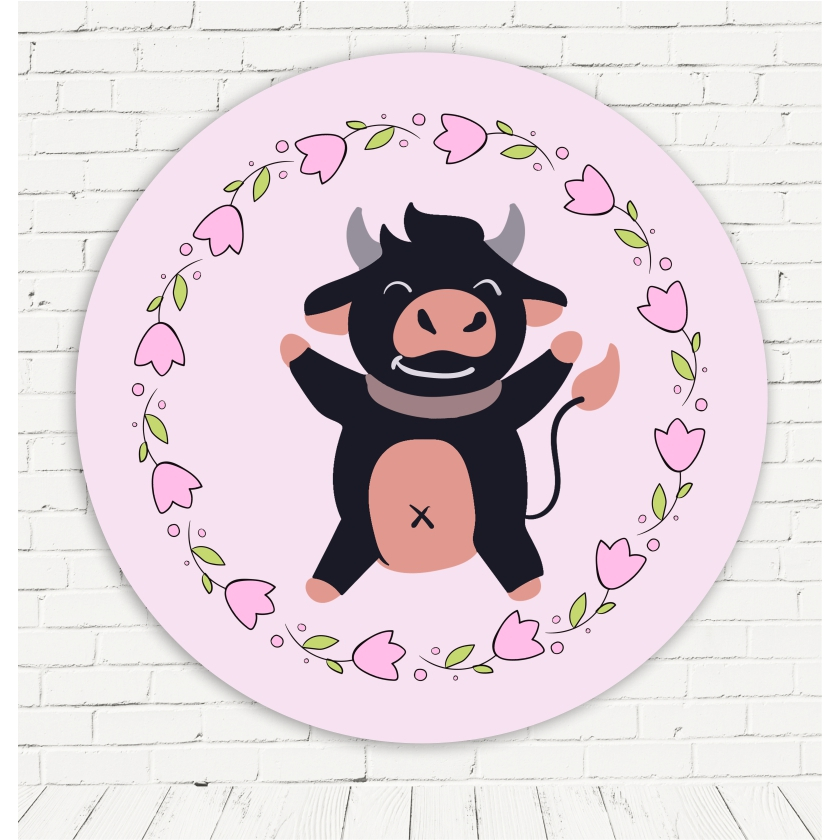 Painel Redondo Tema Malha Vaquinha Para Decoração de Festa Em Tecido Sublimado 3d Com Elástico