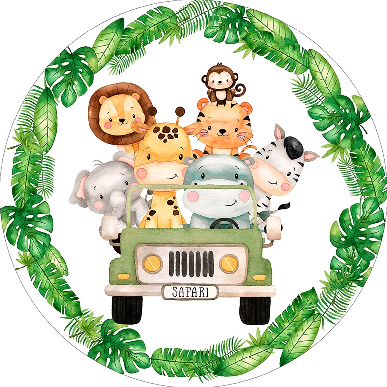 Painel 3d Festa Redondo 1,50 Malha Sublimado Safari Baby Carro Fundo Branco