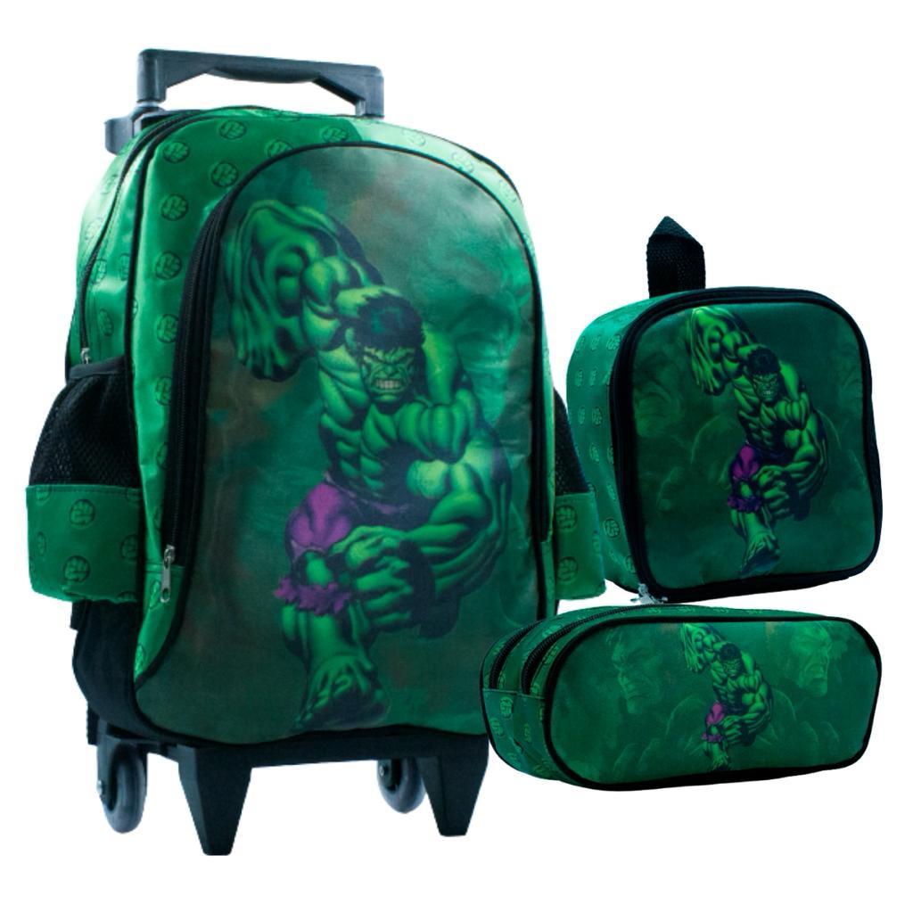 Mochila Escolar Infantil Carrinho Kit Com Estojo Lancheira Térmica Impermeável Rodinhas 3 Peças - Menino Carros